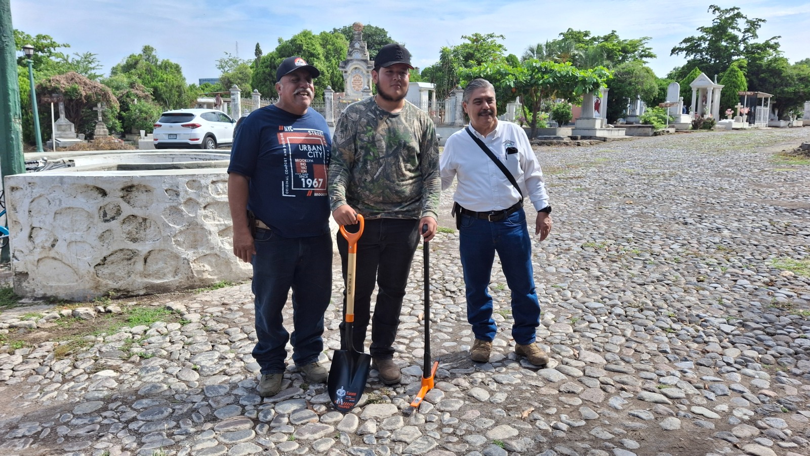 Arturo León Alam señaló que “tuvimos que dotar de pico y pala a un trabajador del Panteón Municipal, ya que no se le quiso entregar por parte de la administración del cementerio; pero además encontramos que no tenían ni papel para imprimir lo que se requiere para un servicio funerario y enviarlo al Registro Civil”.