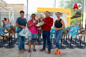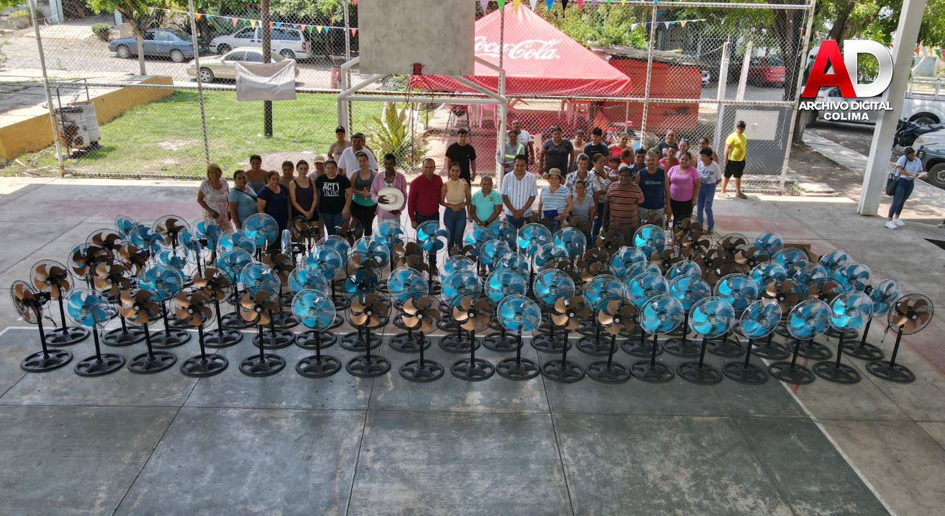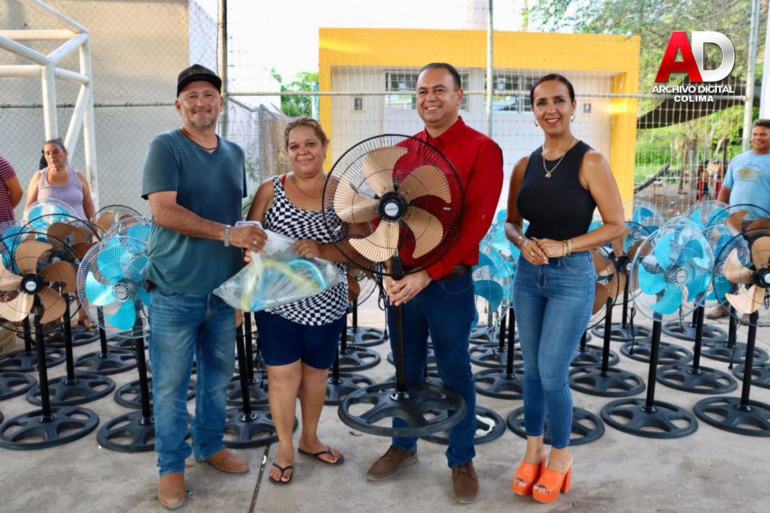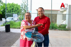 El presidente municipal de Tecomán, Armando Reyna Magaña, en compañía de su esposa Mili Cuevas Verduzco, presidenta del DIF Municipal de Tecomán, continúa con su programa personal de entrega de ventiladores a bajo costo, una iniciativa social que ha permitido apoyar a cientos de familias tecomenses en esta temporada de altas temperaturas.