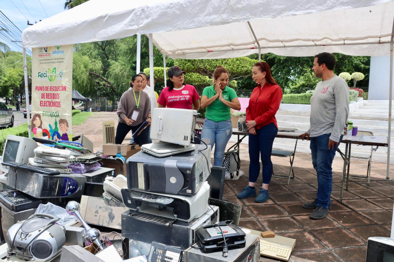 Villa de Álvarez, Col.- A través del programa Reciclón, el Gobierno Municipal de Villa de Álvarez, en coordinación con la Fundación Albatros, ha logrado recolectar 11.2 toneladas de aparatos electrónicos en desuso durante los primeros siete meses del año, informó la Presidenta Tey Gutiérrez Andrade.