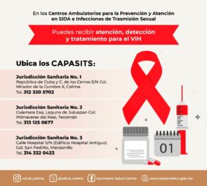 La Secretaría de Salud del Gobierno del Estado de Colima brinda atención médica integral especializada del virus de inmunodeficiencia humana (VIH) y del síndrome de inmunodeficiencia adquirida (S1D4), con criterios de igualdad y respeto, sin discriminación ni estigmatización, que incluyen la aplicación gratuita de pruebas rápidas.