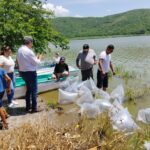 El Gobierno del Estado de Colima, a través de la Subsecretaría de Desarrollo Rural, continúa la entrega de alevines -crías de tilapia- y el titular de Subseder, Elías Antonio Lozano Ochoa, entregó 60 mil alevines a productoras y productores de la comunidad de Alcuzahue (municipio de Tecomán), quienes se encargaron de dispensar las especies en la laguna de esa localidad.