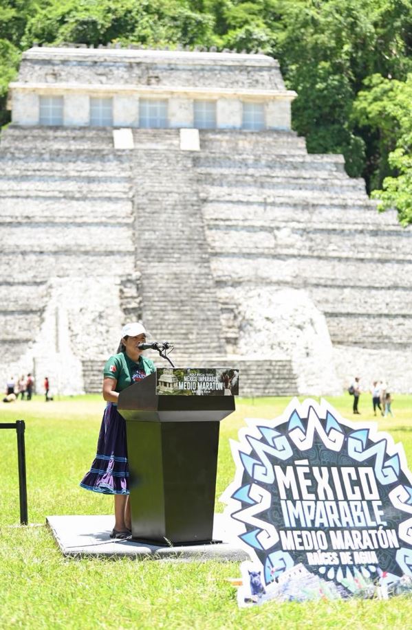 Desde la zona arqueológica de Palenque, el Gobierno de México, en coordinación con el Gobierno de Chiapas, presentaron el medio maratón México Imparable, Raíces de Agua, que se realizará el próximo 14 de septiembre y es el inicio de un serial de cuatro carreras que se realizarán en caminos sagrados de la Ciudad de México, Oaxaca y Chihuahua, con el objetivo de enaltecer las culturas de los pueblos originarios.
