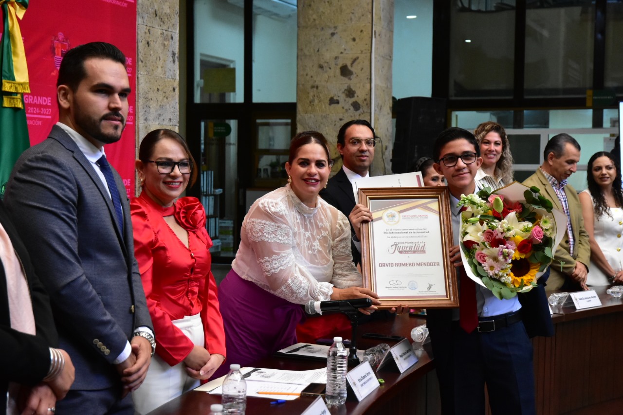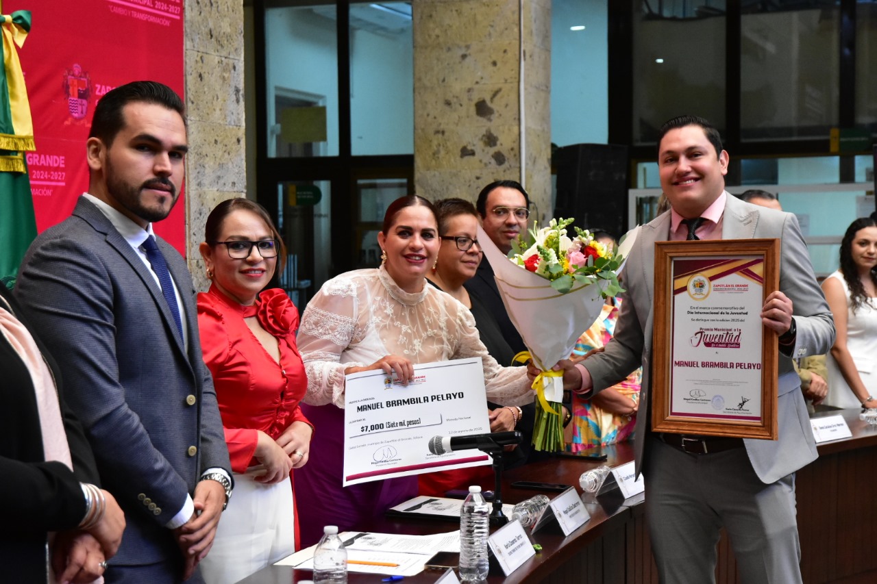 El “Premio Municipal de la Juventud 2025” se entregó a: Adán Soto Contreras, categoría humanística; Karen Romo Contreras, cultural; David Alejandro Ramírez Zepeda, cívico; Martha Stephanie Cisneros Torres, laboral; Manuel Brambila Pelayo, científica; David Romero Mendoza, académica; Laura Carolina Moreno Contreras, deportiva y Daniela Villa Ponce, ambiental.