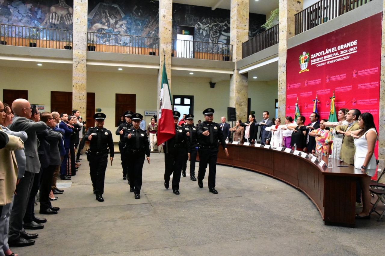 La secretaria de Gobierno, Karla Cisneros Torres realizó el desahogo de la sesión, misma que inició con los Honores a la Bandera a cargo de la Escolta Oficial de la Comisaría Municipal de Seguridad Pública, e interpretación del Himno Nacional Mexicano.
