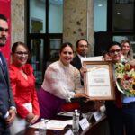 “En esta sesión solmene hemos reconocido a nueve jóvenes que rompieron esquemas, nueve hombres y mujeres que han demostrado con su talento, esfuerzo y perseverancia que son ejemplo a seguir; que con trabajo constante se logran los objetivos y que su voz cuenta y se escucha fuerte; los felicito de corazón, porque inspiran, porque se lo han ganado con su esfuerzo y porque se lo merecen”.