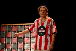 La programación del festival prosiguió en este recinto con la presentación de la obra de teatro ‘Los niños no lloran’ de la compañía tapatía ‘No lloran teatro’. Esta puesta en escena creada por Mauricio Carvajal y Erick Ramírez, con dirección de Andrea Belén Sánsa e iluminación de Nancy Martínez, cuestiona la represión de sentimientos y emociones en hombres, como consecuencia de los estándares sociales y de una educación machista que se repite y hereda de generación en generación.
