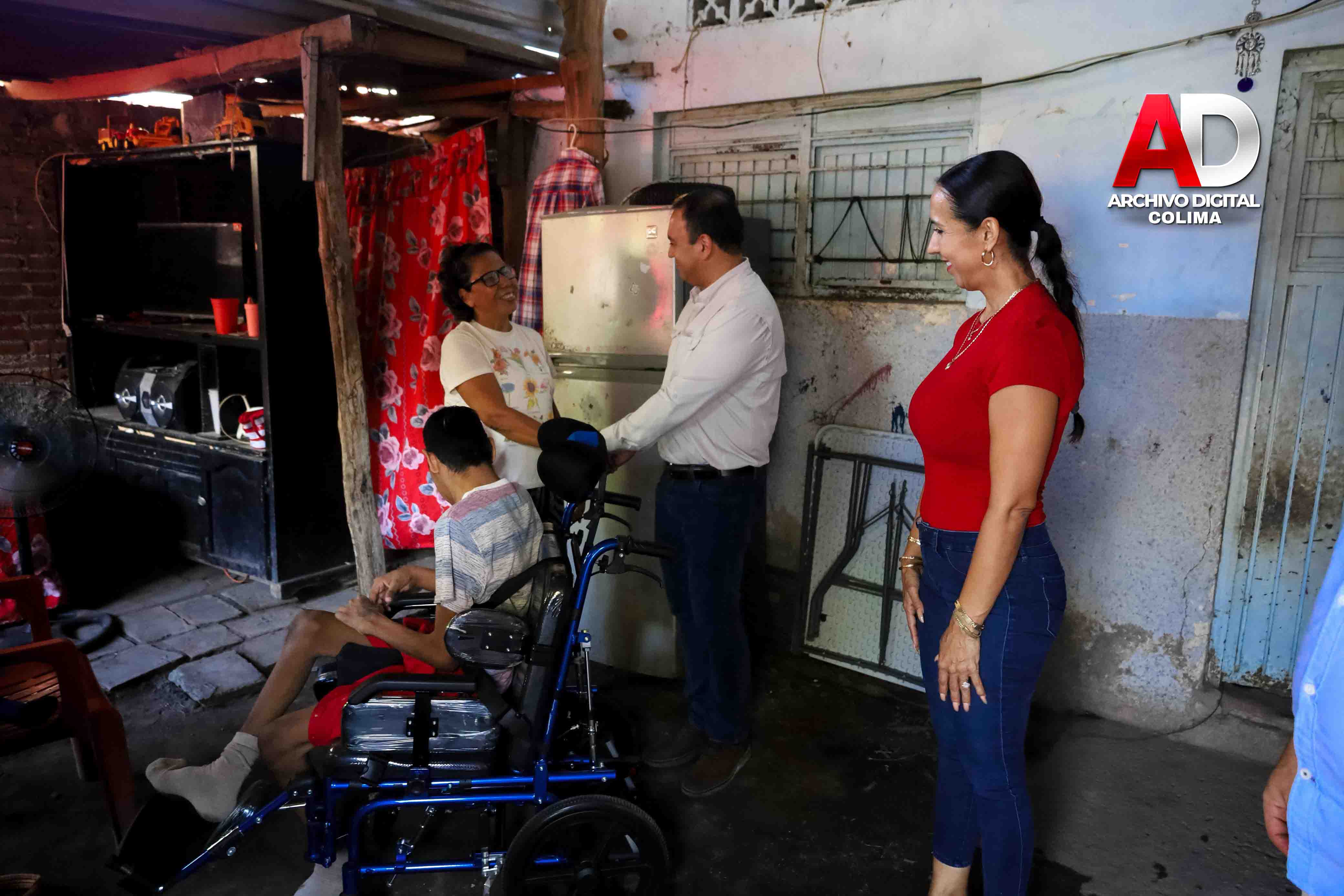 Por su parte, la presidenta Mili Cuevas subrayó que el compromiso del DIF Tecomán es con toda la comunidad. Como muestra de ello, durante el recorrido se entregó una silla de ruedas a una persona con discapacidad, demostrando el enfoque integral del gobierno en el bienestar de todos los ciudadanos.