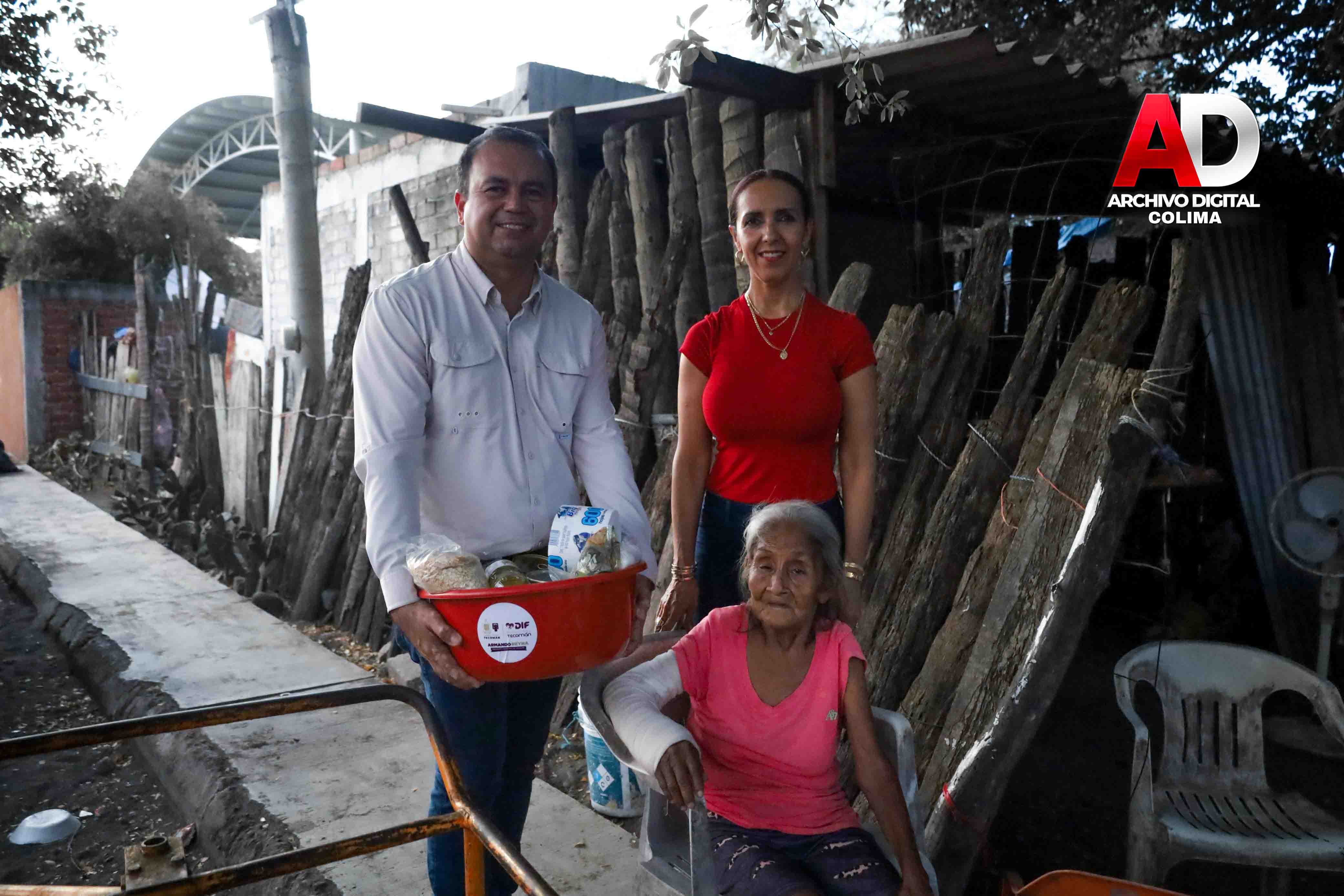 Durante las visitas, el presidente municipal y la presidenta del DIF entregaron productos de la canasta básica e insumos esenciales, como parte de una agenda de apoyo continuo que busca fortalecer a los grupos prioritarios de Tecomán.