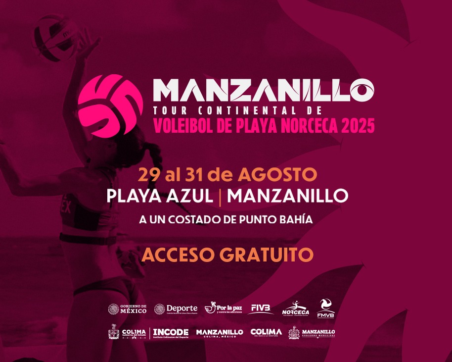 Manzanillo se prepara para recibir, del 29 al 31 de agosto, a las mejores duplas de voleibol de playa de Norteamérica, Centroamérica y el Caribe en el Norceca Beach Volleyball Continental Tour Manzanillo 2025, que tendrá lugar en la Playa Azul, a un costado de la Plaza Punto Bahía. Esta justa internacional reunirá a atletas de talla mundial en un ambiente único frente al mar, con música, sol y fiesta deportiva.