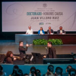 “Celebramos la llegada del doctor Juan Villoro a nuestra comunidad universitaria, por la trascendencia de su obra literaria y su compromiso con la sociedad. Hoy, al conferirle esta distinción, reconocemos la trayectoria de un autor que ha puesto la palabra al servicio de la cultura y de la sociedad, y le damos la más cordial bienvenida a nuestro claustro académico”.