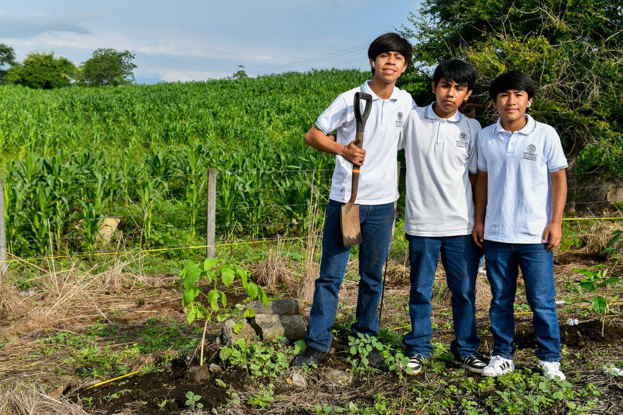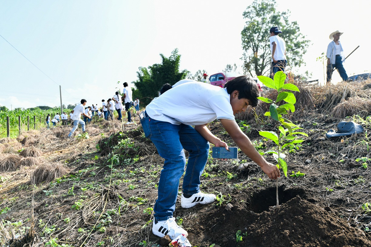 Los y las estudiantes del primer semestre del bachillerato, junto con sus profesores y profesoras, personal administrativo y de servicios generales, así como personal del programa estatal “Sembrando Vida”, plantaron los 80 arbolitos.