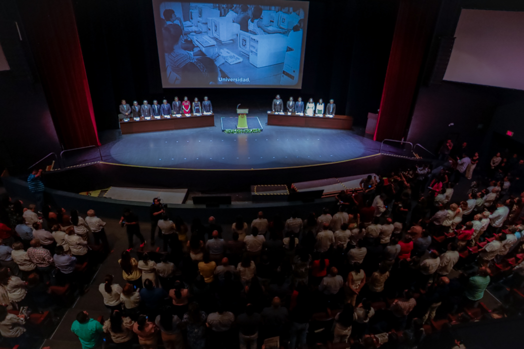 Este viernes 12, con una ceremonia sobria y la proyección de un video emotivo y muy cercano, la Universidad de Colima celebró sus primeros 85 años. Aunque el día oficial es el 16 de septiembre, esta ceremonia reunió a todas y todos: exrectores, directivos, docentes, investigadores, estudiantes, trabajadores de la casa de estudios, a los sectores institucionales, al personal jubilado y funcionarios del estado en el teatro universitario “Coronel Pedro Torres Ortiz”.