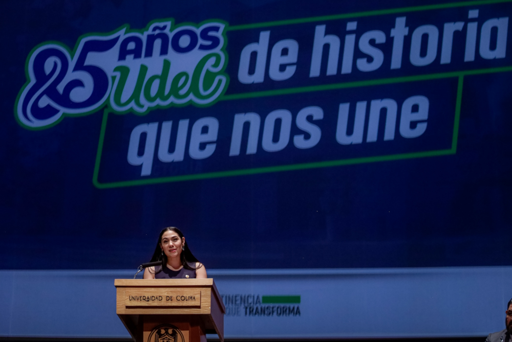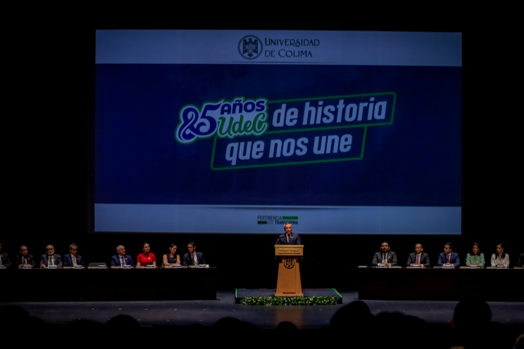 “Hoy celebramos 85 años de una Universidad que se sabe fuerte porque ha sabido unirse, renovarse y proyectarse hacia el futuro. Lo hacemos conscientes de que nuestra misión será siempre educar, investigar y difundir la cultura y el deporte con sentido social, en beneficio de Colima y de México”, dijo el rector Christian Jorge Torres Ortiz Zermeño.