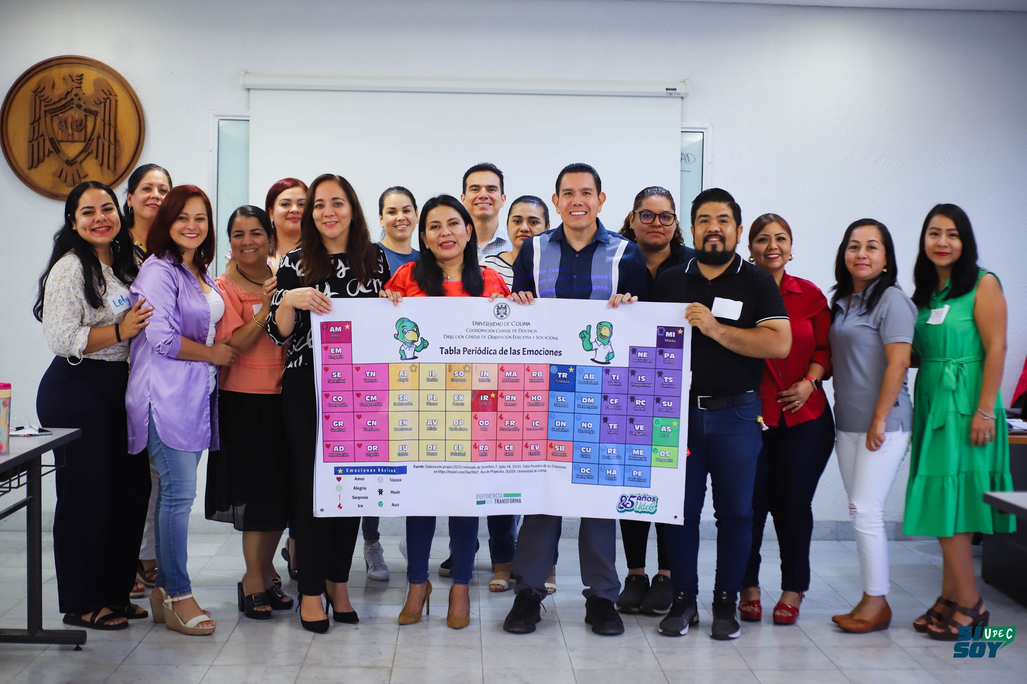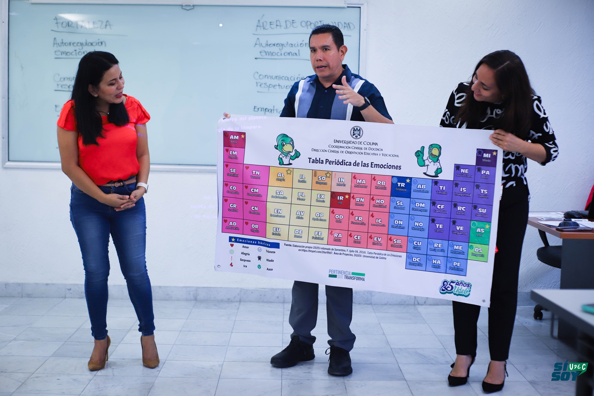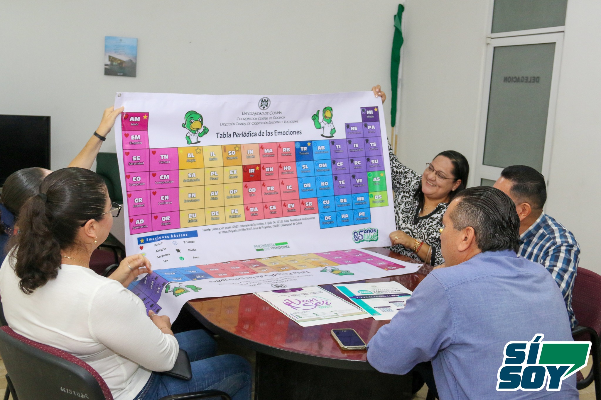 Como parte del material de apoyo, se entregó a las delegaciones la Tabla Periódica de las Emociones, un recurso didáctico visual diseñado por personal de la DGOEyV, basado en el modelo original de Sorrentino (2016), que permite al estudiantado identificar, nombrar y trabajar con sus emociones como parte del proceso de construcción de su proyecto de vida.