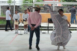 En esta alegre velada, los asistentes disfrutaron de una gran variedad de antojitos mexicanos, aguas frescas, y un escenario que recibió el talento de las y los estudiantes de Intervención Educativa del turno vespertino, Fany Navarrete y Omar Suárez, del tercer semestre, quienes presentaron la estampa “Jarabe tapatío”; así como una muestra de floreo de reata a cargo del charro José Daniel Gorrocino García, quién enalteció nuestras tradiciones y expresiones culturales. Como parte del programa, el Dr. Héctor Porfirio Ochoa, compartió la lectura de la “Contextualización sobre la lucha de independencia de México”, así como la muestra “Las mujeres de nuestra independencia” a cargo de la Maestra Zaida Bustos Eusebi.
