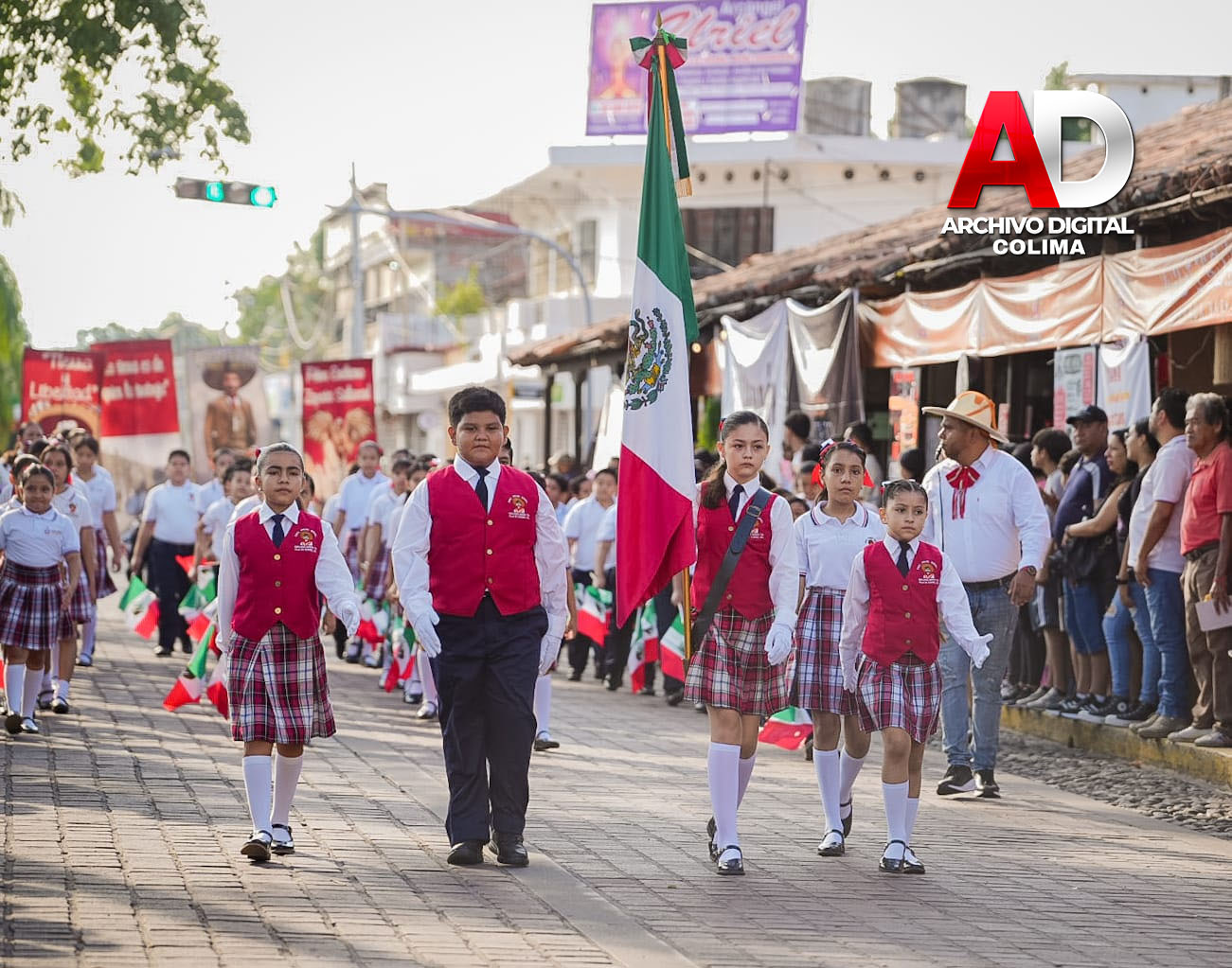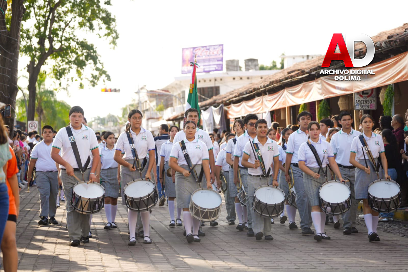 En la marcha participaron la Escolta y Banda de Guerra de la Dirección General de Seguridad Pública de Villa de Álvarez, autoridades del municipio y de la Secretaría de Educación y Cultura, supervisores de educación básica y funcionarios del Ayuntamiento.