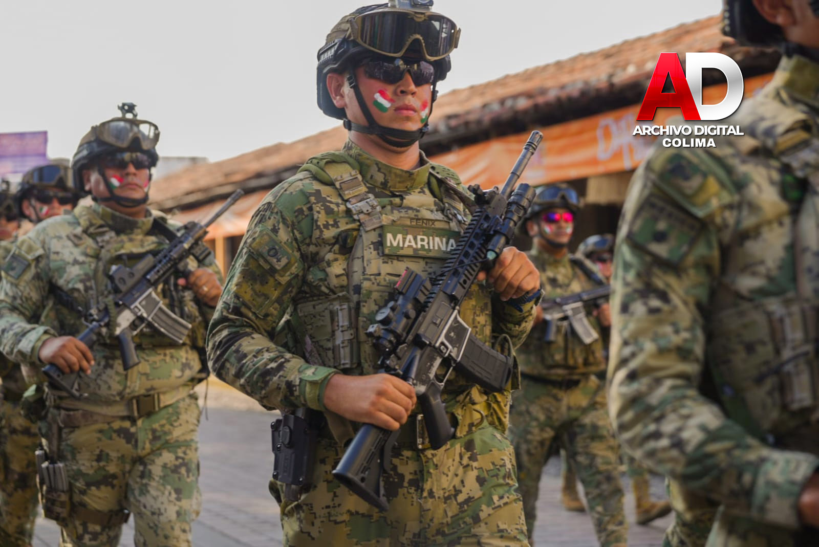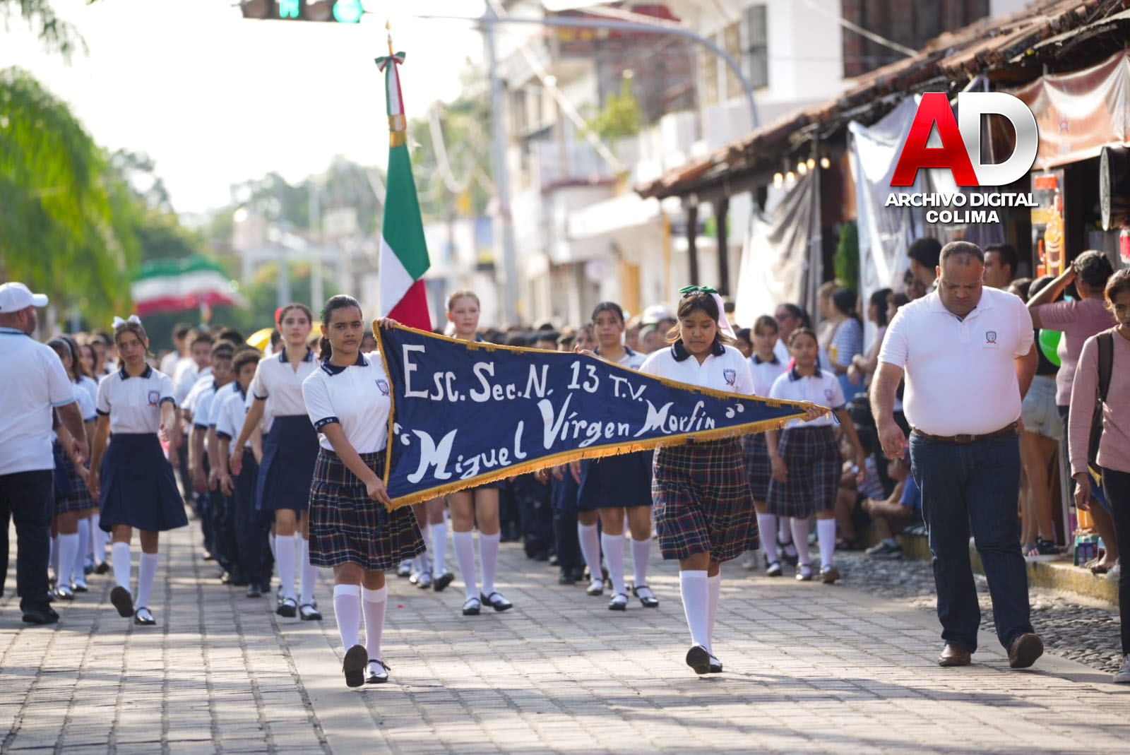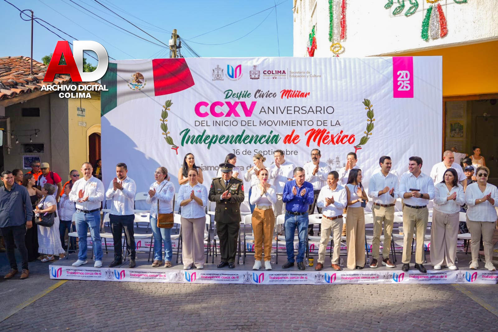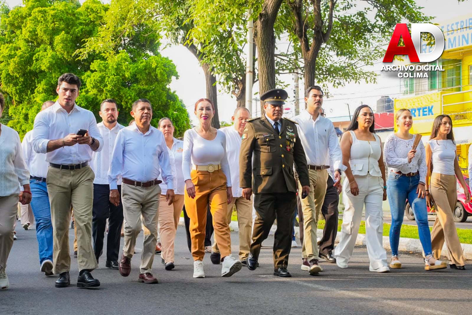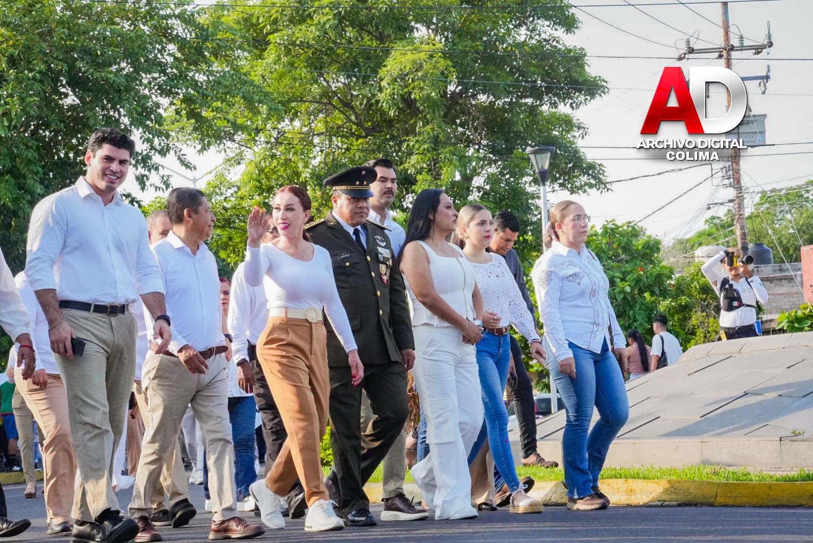 También marcharon efectivos de la Secretaría de Marina, la Dirección General de Seguridad Pública, la Unidad Municipal de Protección Civil, URIE Villa de Álvarez y la Escuela de Monta Hermanas Vargas, con la Escaramuza Charra Adelitas de Villa de Álvarez.