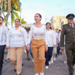 representante del General Enrique Hernández Cisneros, Comandante de la 20 Zona Militar, la Alcaldesa encabezó el Desfile en el que marcharon 25 contingentes.