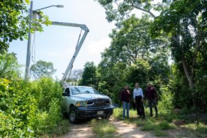 Este miércoles, la presidenta municipal de Manzanillo, Rosa María Bayardo Cabrera, realizó una visita a las comunidades de La Rosa y El Huizcolote para supervisar los trabajos de instalación de luminarias por parte de Alumbrado Público, beneficiando a las familias que durante años han carecido de este servicio en zonas específicas.