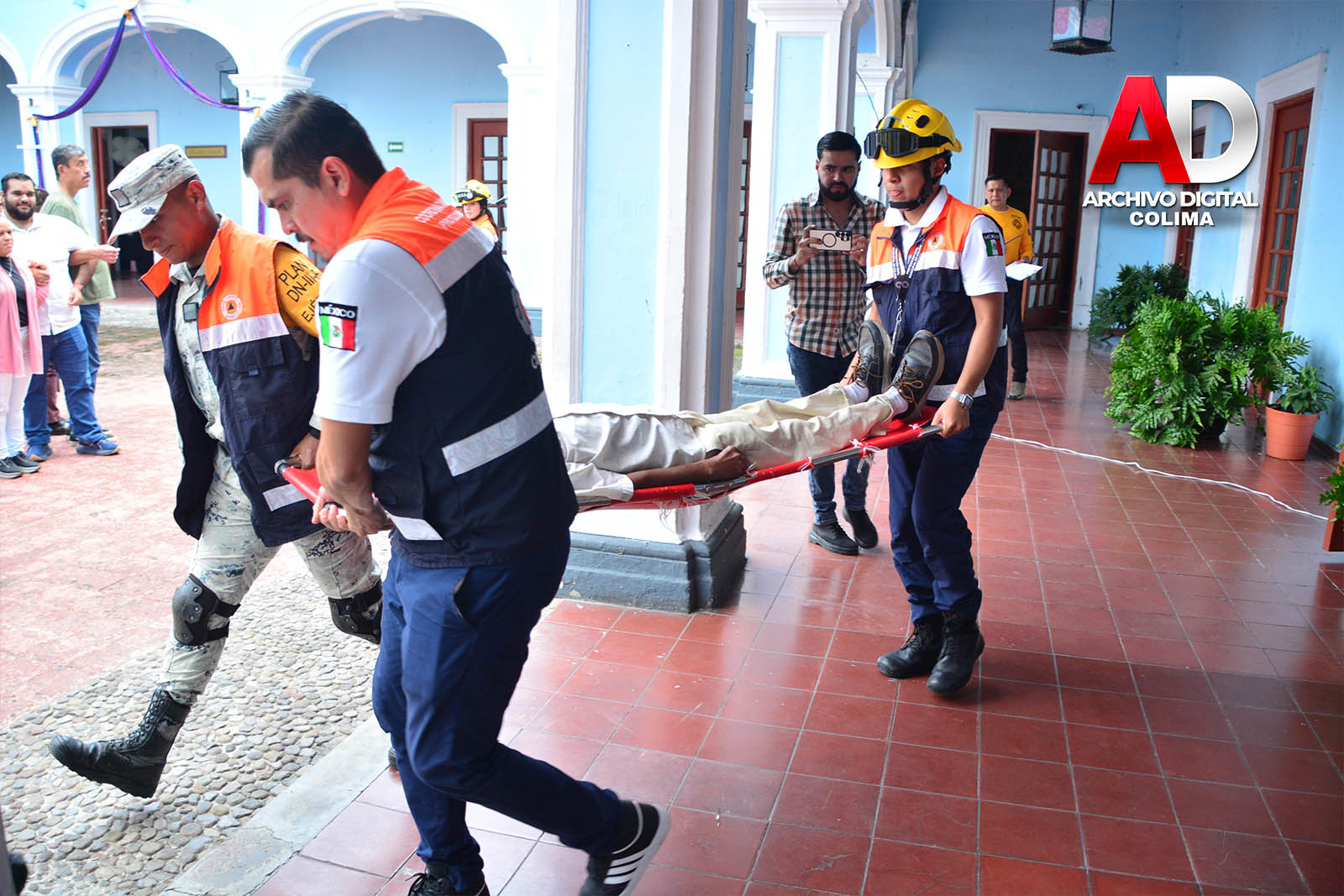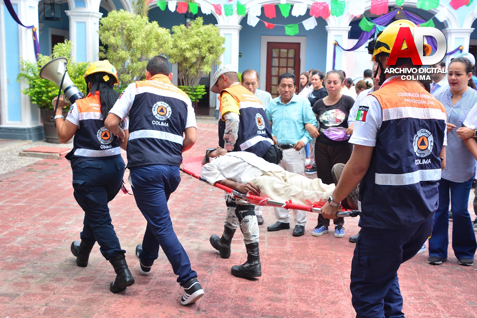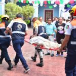 El Teniente Ángeles dijo que en el simulacro se simuló el retiro de una persona que al momento del hipotético sismo, sufrió un desmayo, por lo que los socorristas y paramédicos de la Cruz Roja, lo llevaron que lo trasladó a un nosocomio a una ambulancia.