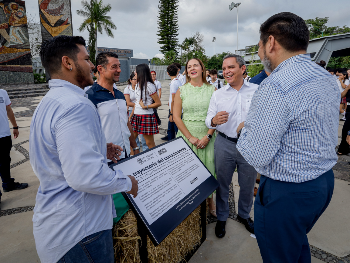 Una vez develada, el rector recordó que el pasado 16 de septiembre la Universidad de Colima cumplió 85 años de formar a miles y miles de jóvenes en el estado, la región y el país, motivo por el cual se está llevando a cabo un programa de festejos muy completo con eventos académicos, culturales, deportivos y científicos.