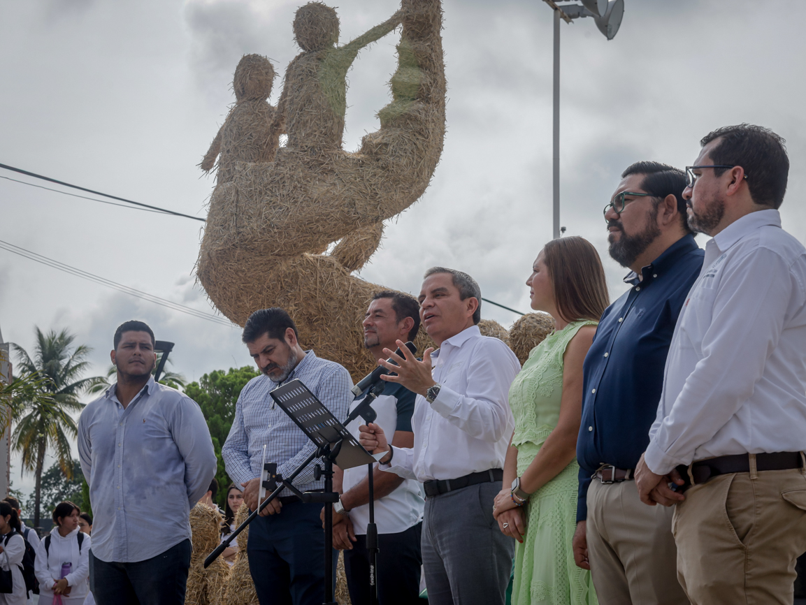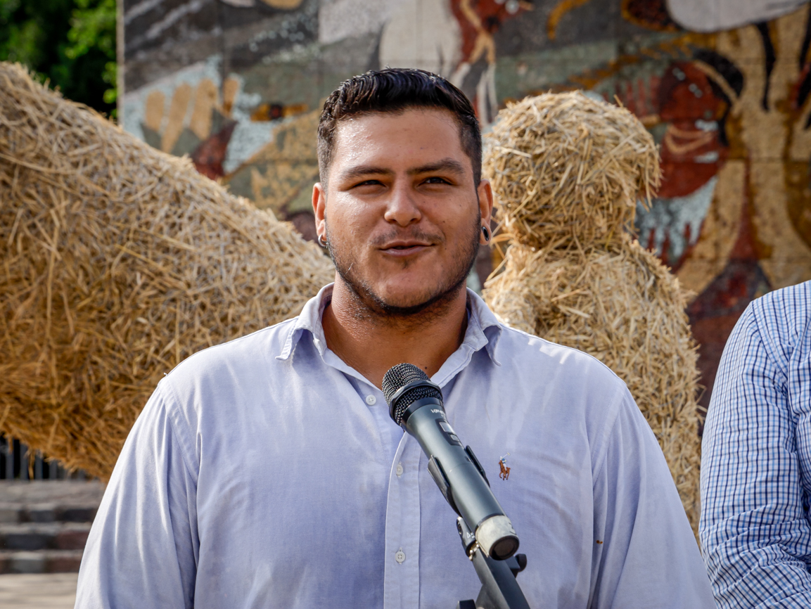 Rubén Eduardo Mejía agradeció la oportunidad de participar en este proyecto. En cuanto a la técnica y los materiales, explicó: “Lo que observan es una escultura realizada con paja y malla, una técnica con gran tradición en Francia. La pieza posee una estructura metálica cuya fabricación presentó una complejidad particular al momento de moldear la espiral”.