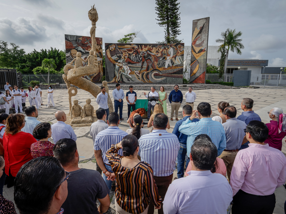 Antes de concluir su intervención, el rector señaló que debido al material con el que fue construida la escultura, se trata de una obra temporal, por lo que pidió a la comunidad universitaria la cuiden, la visiten y difundan.