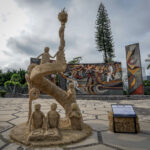 *“La Trayectoria del Conocimiento” es una escultura conformada por una espiral ascendente, con una antorcha en la punta y dos jóvenes sentados en medio del camino, lo que representa el crecimiento continuó, así como el proceso evolutivo de un estudiante.