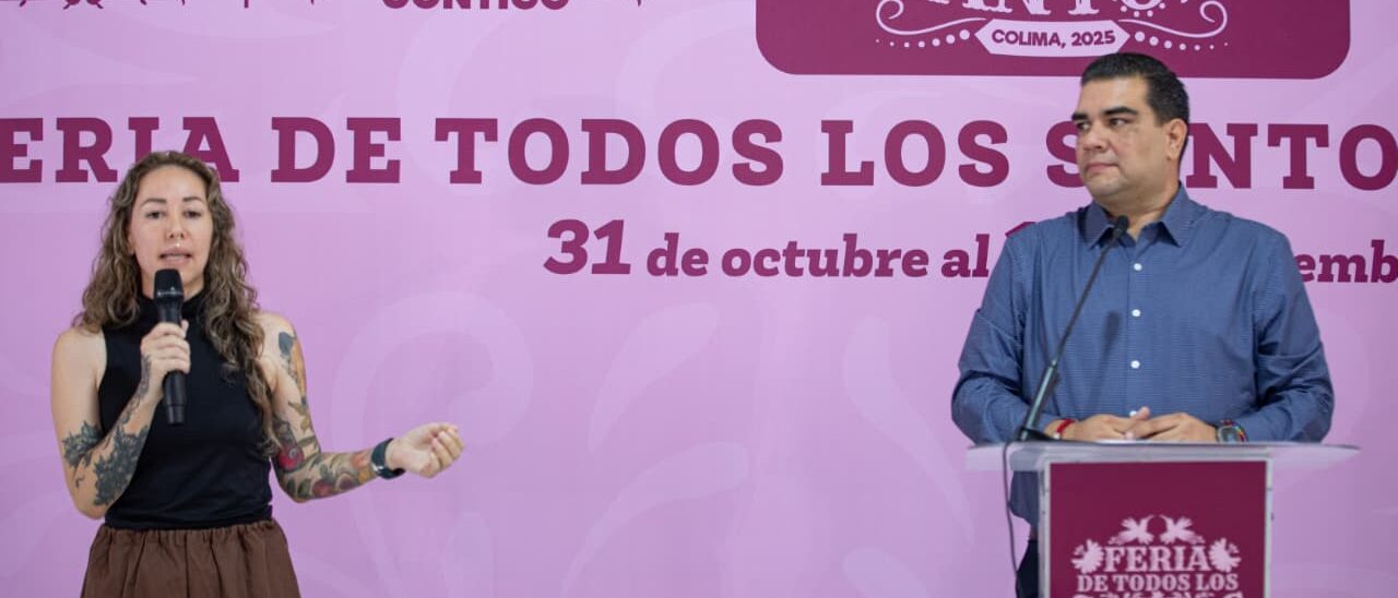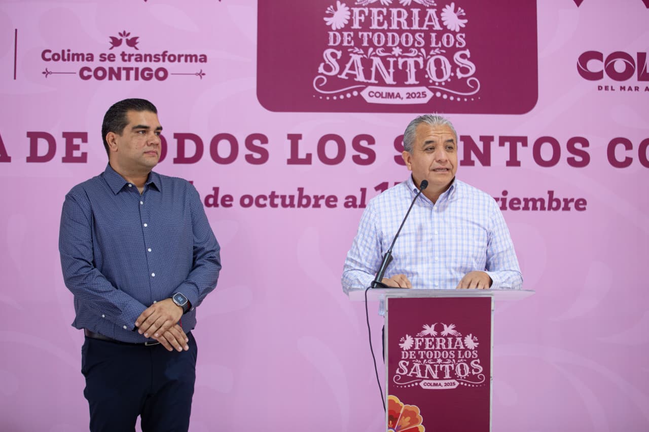 El secretario de Desarrollo Económico (Sedeco) del Gobierno del Estado de Colima, Francisco Javier Rodríguez García y el director general del Instituto de Fomento de Ferias y Exposiciones (Iffecol), Rodolfo Aguilar Dávalos, presentaron este martes la cartelera artística del Palenque y el cartel oficial de la edición 86 de la Feria de Todos los Santos Colima 2025, que será del 31 de octubre al 17 de noviembre.