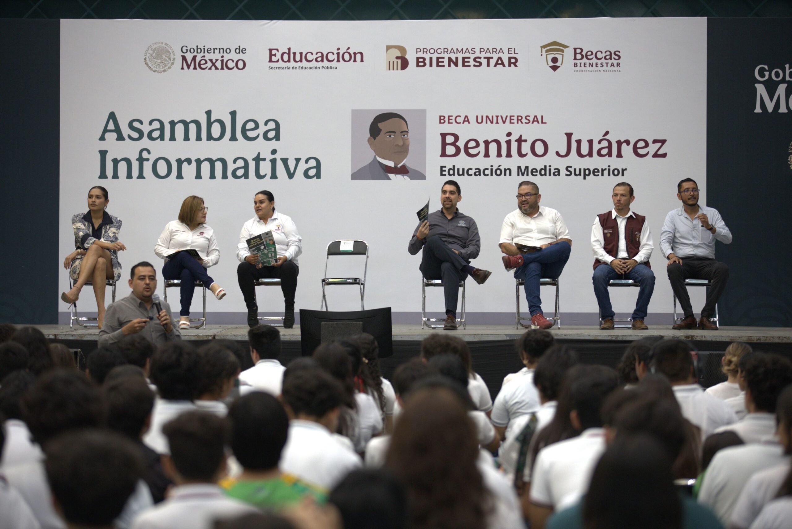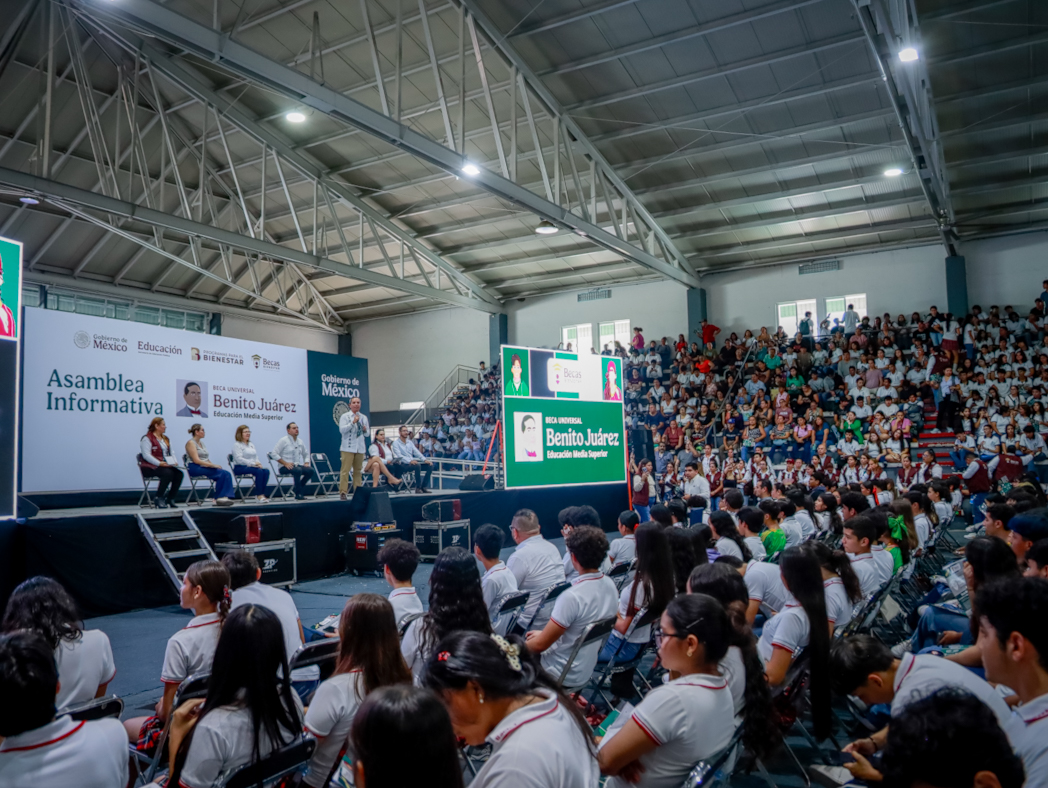 Este viernes 26 de septiembre arrancó en el auditorio de la Unidad Deportiva Morelos de la ciudad de Colima la primera de seis asambleas informativas de las Becas Universales para la Educación Media Superior “Benito Juárez”, dirigidas a estudiantes de primer semestre de los bachilleratos públicos del estado. Las asambleas son para dar a conocer las instrucciones que las y los jóvenes deben seguir, de manera virtual, para recibir este apoyo federal.
