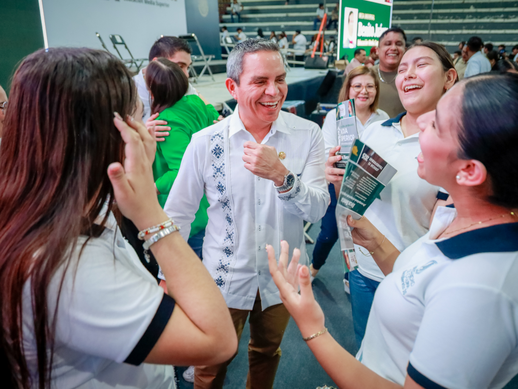 “Ustedes viven en un tiempo distinto, con oportunidades que antes no existían. Además de las becas, en el gobierno estatal hemos entregado computadoras a estudiantes de secundaria para que les duren durante la preparatoria. Todo esto es posible gracias a la confianza que la gobernadora ha puesto en la juventud y al compromiso con su educación”, expresó.
