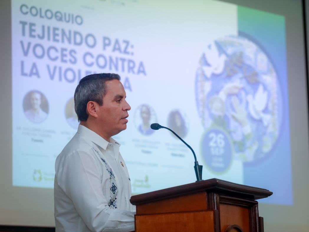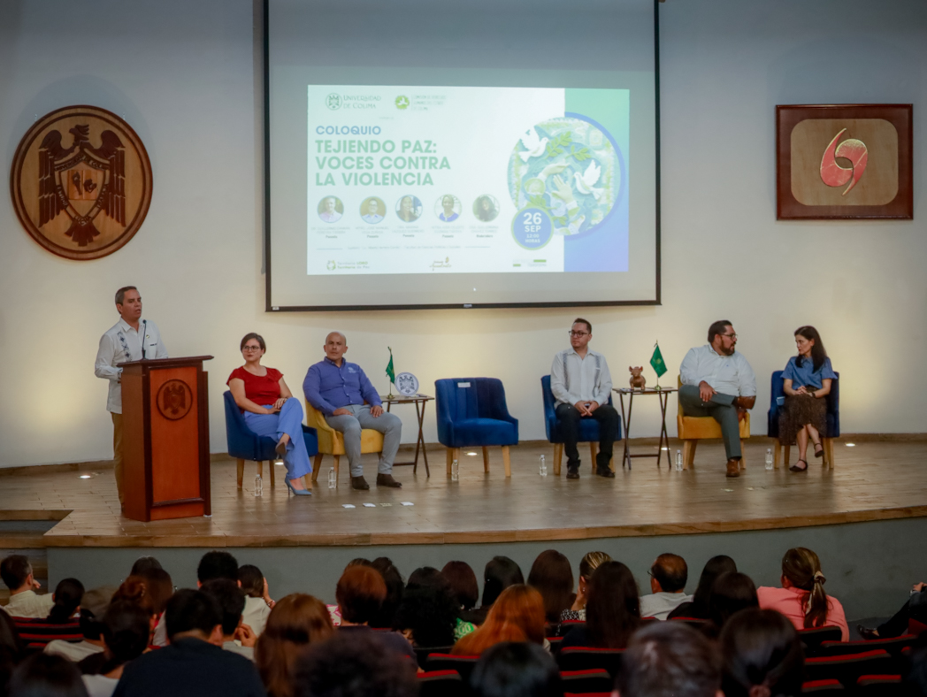 Este viernes, el rector de la Universidad de Colima, Christian Torres Ortiz Zermeño, inauguró el Coloquio “Tejiendo Paz: Voces contra la Violencia”, en el auditorio de Ciencias Políticas. El evento fue organizado por la Comisión de Derechos Humanos del Estado de Colima (CDHEC) y esta casa de estudios, en el marco del Día Internacional por la paz.