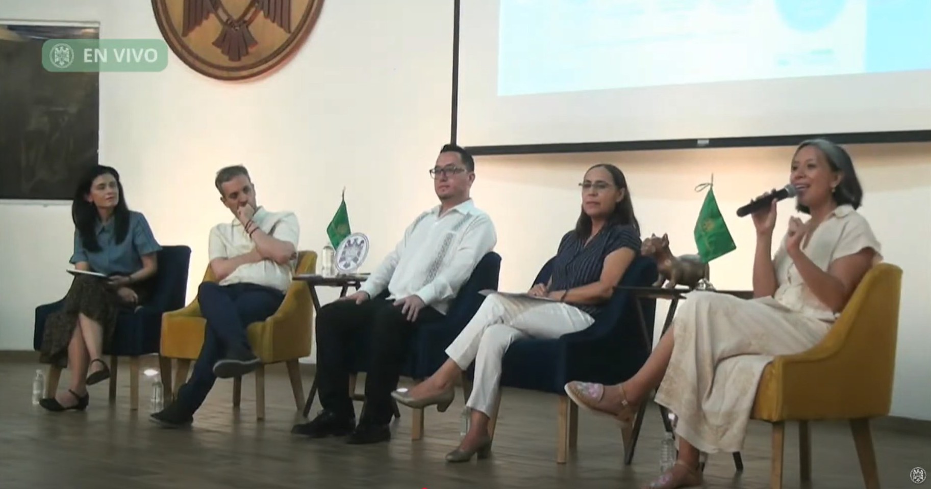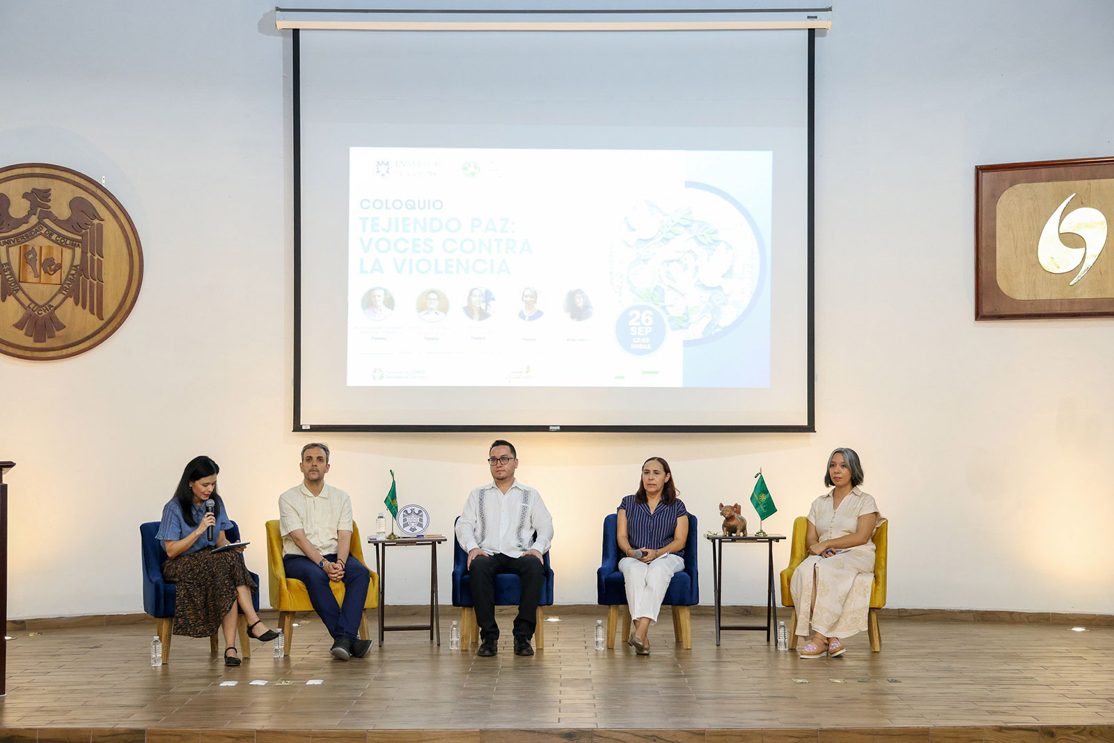 El coloquio contó con la participación de un panel de expertos y expertas integrado por el Maestro José Manuel Vega Zúñiga, presidente de la Comisión de Derechos Humanos del Estado de Colima; el Doctor Guillermo Damián Pereira Tissera, investigador y especialista en teoría política y cultura de paz; la Doctora Marina Vázquez Guerrero, Directora General de Radio Universitaria e investigadora en comunicación para el cambio social, y la Maestra Iver Celeste Guzmán Tafoya, estudiante de doctorado e investigadora en desigualdades sociales y género.