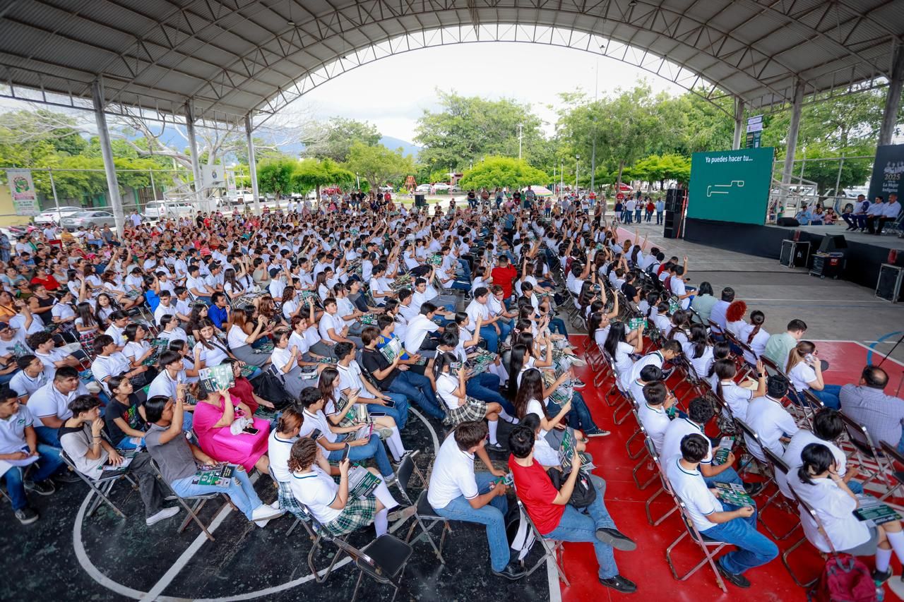 Resaltó que el Gobierno de México está apoyando a todos los jóvenes, como una tarea principal, para que tengan la oportunidad de estudiar, y pidió a quienes van a recibir la beca que hagan el compromiso de concluir su bachillerato.