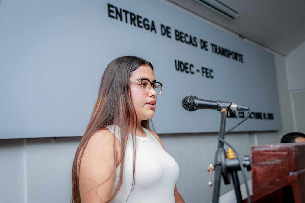 En nombre de las y los beneficiados, Marlene Guadalupe Ceja agradeció a quienes hicieron posible estas becas. “Los estudiantes valoramos el esfuerzo que realiza la UdeC porque esta acción resulta muy beneficiosa para nosotros. Como estudiantes, enfrentamos muchos retos; uno de ellos es trasladarnos a nuestras escuelas para cumplir con la jornada académica, por lo que esta beca representa un apoyo que nos facilita ese esfuerzo y nos motiva a seguir adelante”.