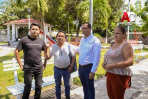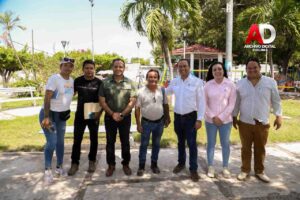 Durante la visita de supervisión, el equipo revisó los importantes avances de este proyecto integral. Se contó con la presencia y acompañamiento del presidente de la comunidad, José Guzmán Hdez., junto con el tesorero y la secretaria. Las mejoras abarcan la reparación y embellecimiento del quiosco y las bancas metálicas, elementos centrales de la convivencia comunitaria. También se realiza la mejora sustancial de banquetas y paseos para garantizar la accesibilidad y seguridad peatonal.