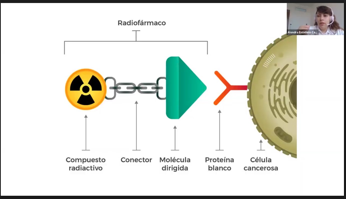 Al abordar el tema del cáncer, la Dra. Escudero explicó sus principales factores de riesgo y enfatizó que la investigación biomédica actual se orienta hacia tratamientos más específicos, personalizados y menos invasivos, en los cuales los radiofármacos desempeñan un papel cada vez más relevante.