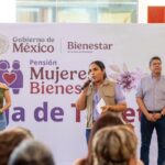 Previamente, la delegada de los Programas del Bienestar del Gobierno de México, María del Rosario Silva Verduzco, recordó que Claudia Sheinbaum dijo que al llegar ella a la Presidencia de México, llegaban todas las mujeres; dijo que la Pensión Mujeres Bienestar es para quienes tienen de 60 a 64 años de edad como apoyo y reconocimiento a todas las tareas que han venido realizando en su hogar como cuidadoras, como protectoras, sin distinción alguna, con el hecho de ser mujer mexicana y tener 60 años de edad.