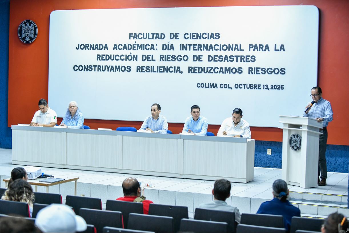 Este lunes 13 de octubre se llevó a cabo la inauguración de una Jornada Académica para conmemorar el Día Internacional para la Reducción del Riesgo de Desastres, bajo el lema: “Construyamos resiliencia, reduzcamos riesgos”, en la en la Biblioteca de Ciencias. Dicha Jornada. Es organizada por la Facultad de Ciencias de la Universidad de Colima.