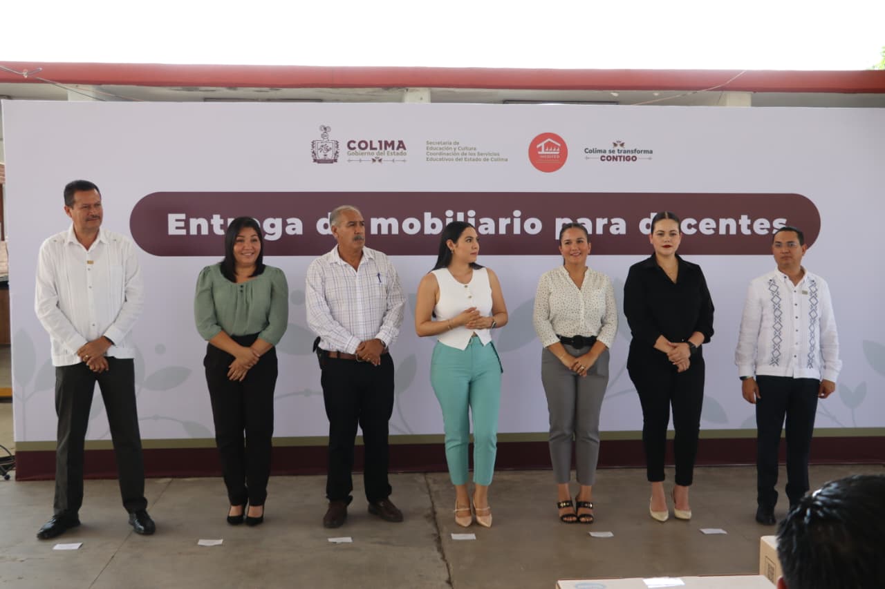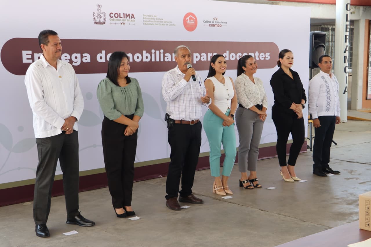 La Sección 39 del SNTE acompañó este día la entrega de mobiliario escolar realizada en la Secundaria “Manuel Álvarez”, en el municipio de Villa de Álvarez, acto encabezado por la Gobernadora del Estado, Mtra. Indira Vizcaíno Silva, el Secretario de Educación y Cultura, Mtro. Adolfo Núñez González, y diversas autoridades educativas.