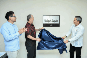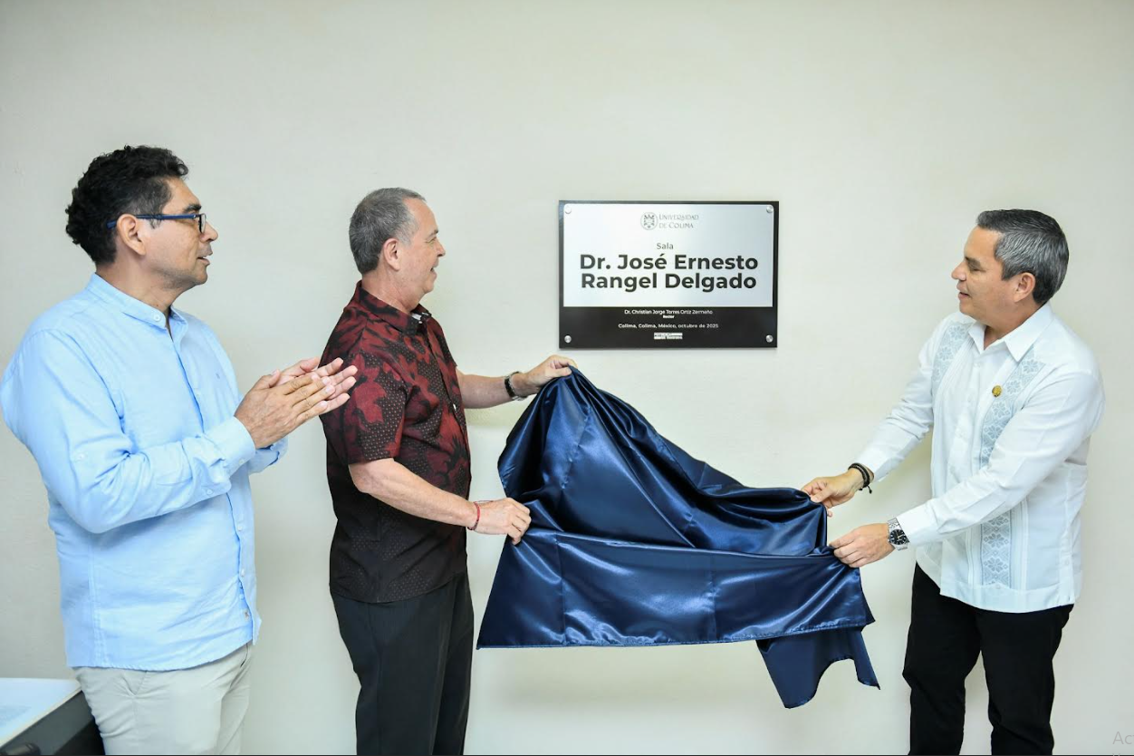 Finalmente, develaron la placa en la sala de juntas de la CUEICP-CEAPEC, que llevará el nombre de José Ernesto Rangel Delgado, pionero en las investigaciones sobre la cuenca del pacífico en el estado, la región y el país.