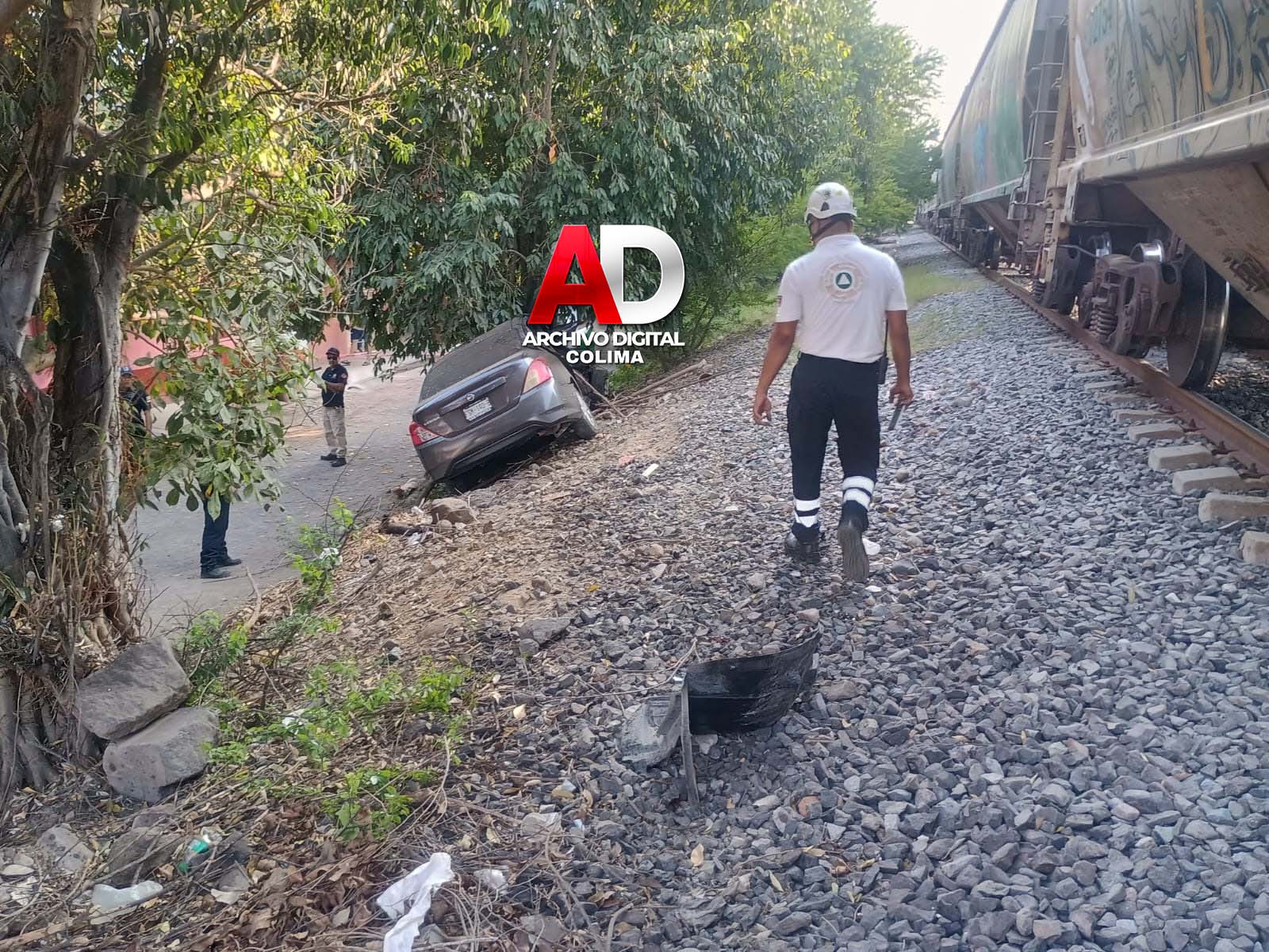 La tarde de este martes se registró un fuerte accidente de tránsito en la colonia Emiliano Zapata, en la cabecera municipal de Coquimatlán, luego de que un vehículo compacto impactara contra el ferrocarril.