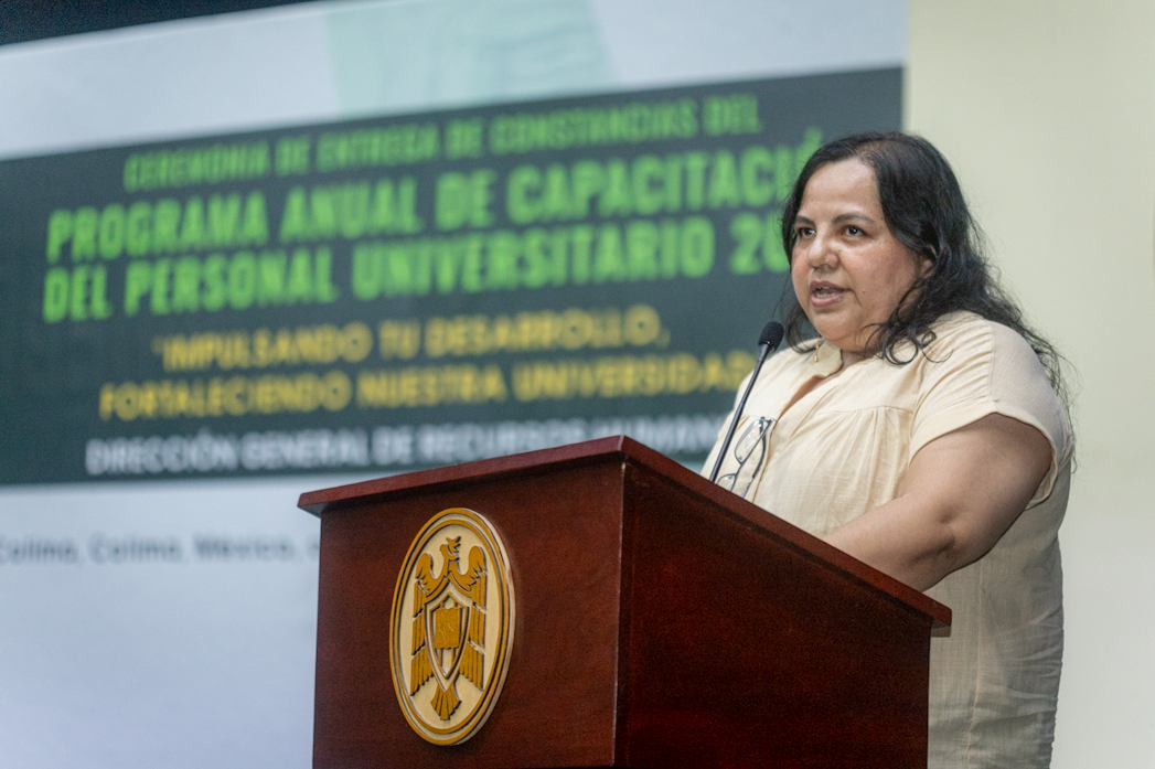 En su turno al micrófono, Priscilia Álvarez, directora de Recursos Humanos, señaló que esta entrega de constancias “es un esfuerzo colectivo que reafirma el compromiso institucional con el desarrollo personal y profesional de quienes conformamos esta comunidad universitaria. Este año ofrecimos una capacitación integrada desde una visión institucional basada en un diagnóstico de necesidades específicas de cada grupo laboral y planeado con la colaboración de instancias responsables de los procesos”.