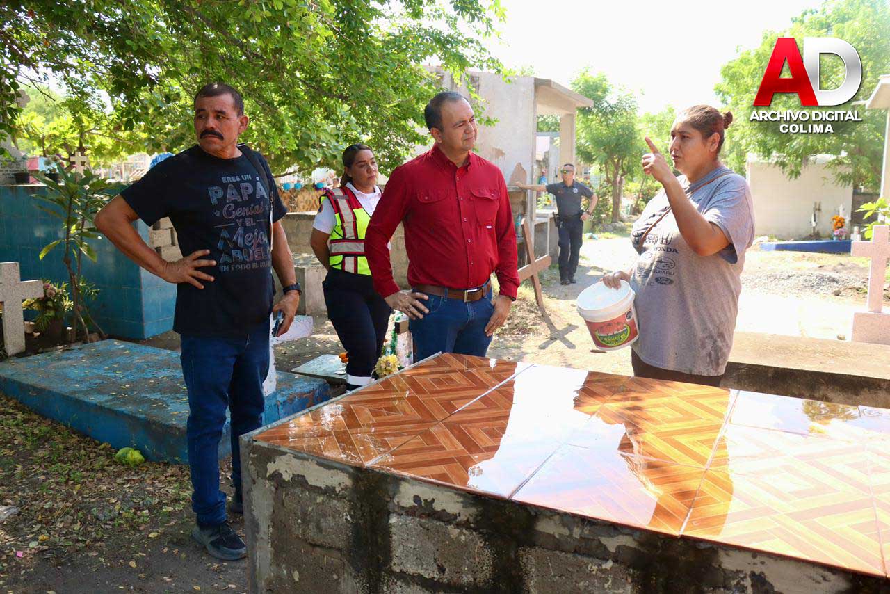 Durante el recorrido, el alcalde estuvo acompañado por el director de Servicios Públicos, Benjamín Olivares, el director de Seguridad Pública, Ignacio Ponce, y la directora de Protección Civil, Karla Ruiz, quienes coordinaron esfuerzos para mantener las condiciones adecuadas dentro y fuera del panteón municipal.