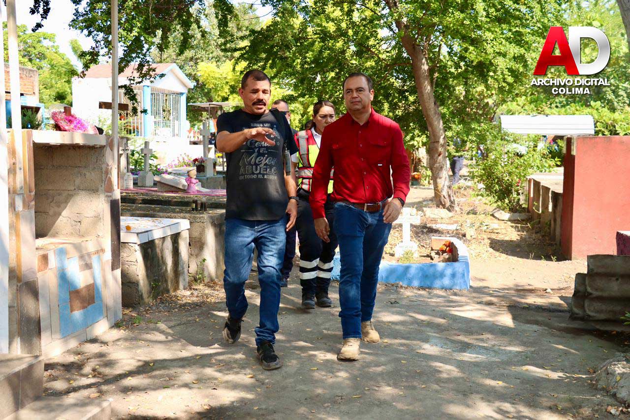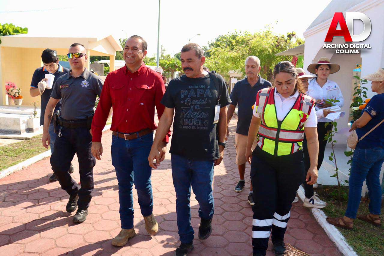 Con motivo de la conmemoración del Día de Muertos, el presidente municipal de Tecomán, Armando Reyna Magaña, realizó este domingo un recorrido por el Panteón de Dolores, con el objetivo de supervisar las acciones implementadas para garantizar un espacio ordenado, limpio y seguro para las familias tecomenses que acudieron a visitar a sus seres queridos.