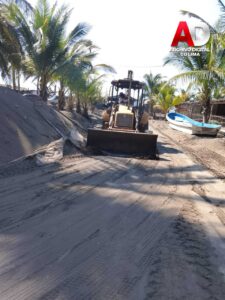 Con el propósito de mantener en óptimas condiciones las vialidades y ofrecer una mejor imagen urbana en una de las zonas turísticas más visitadas del municipio, el presidente municipal de Tecomán, Armando Reyna Magaña, giró instrucciones para que se llevaran a cabo labores de limpieza y retiro de arena en las calles de Playa Pascuales.