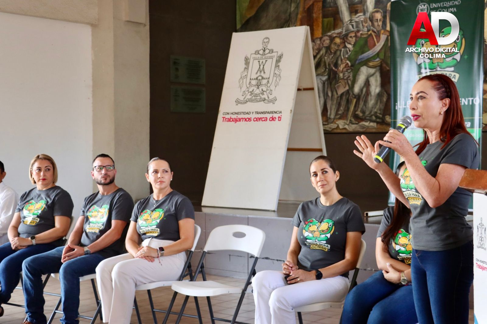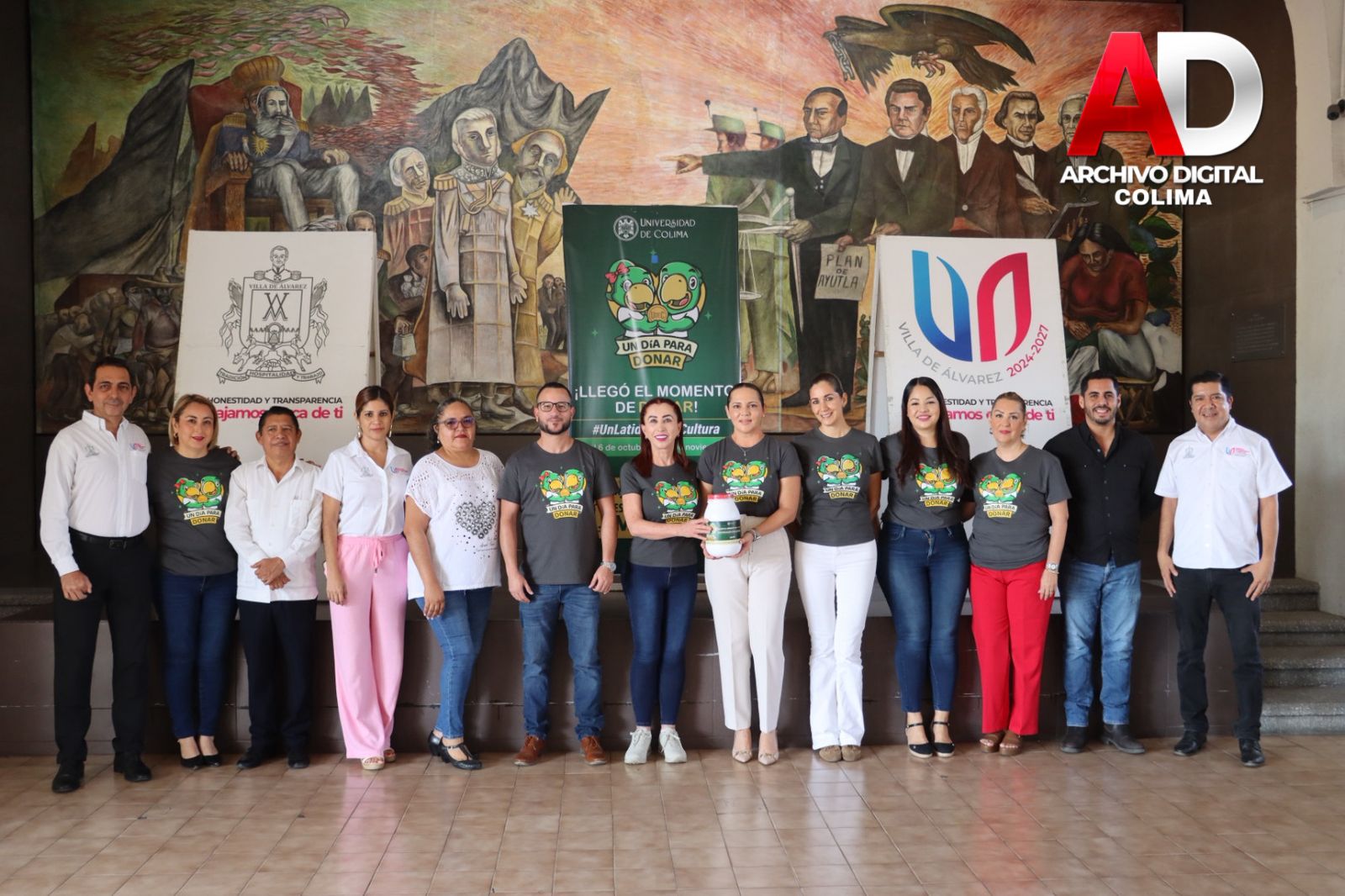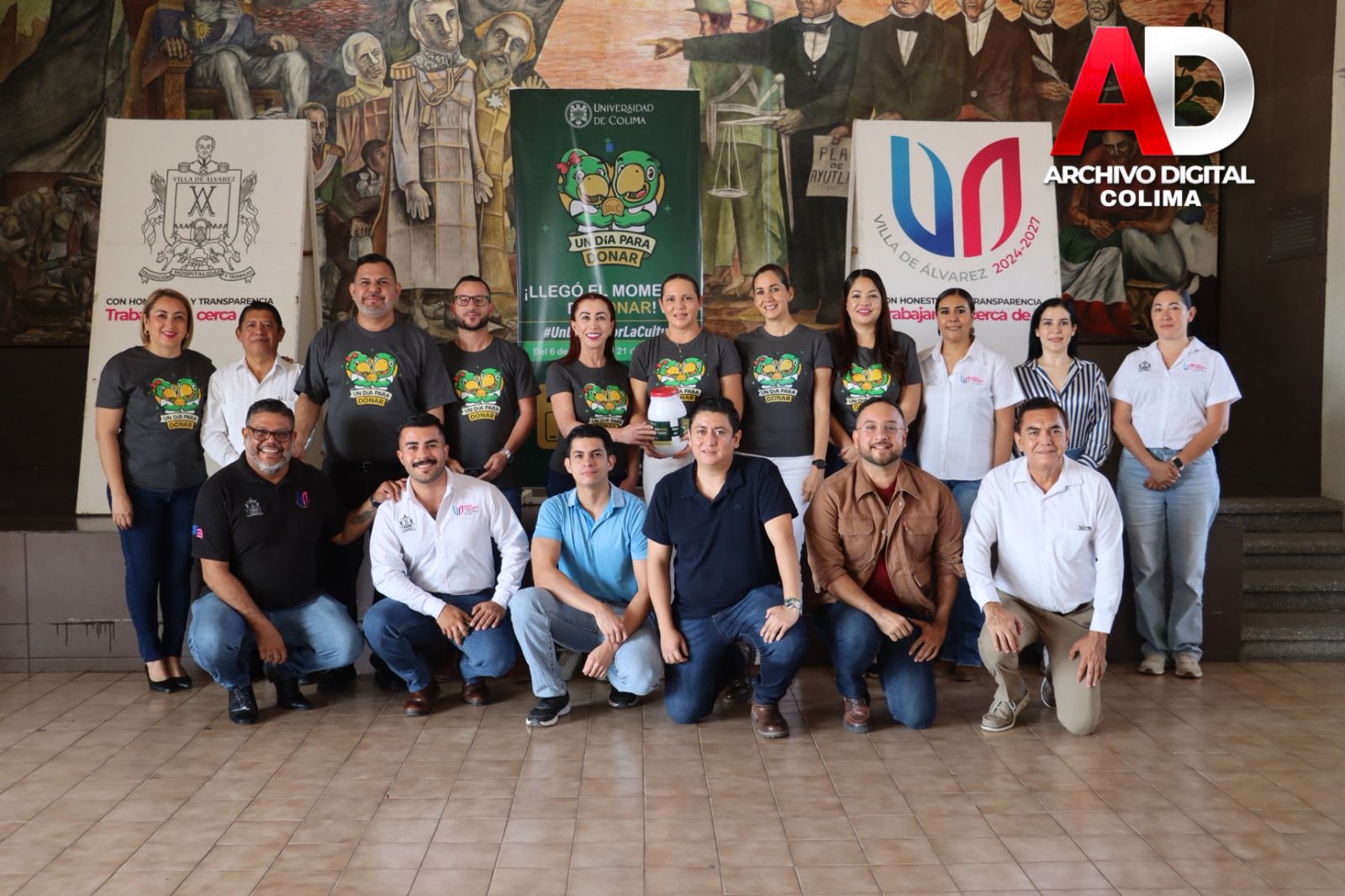 Villa de Álvarez, Col.- Encabezados por la Presidenta Tey Gutiérrez Andrade, funcionarios y funcionarias del municipio de Villa de Álvarez participaron en la colecta Un Día para Donar, organizada por el Voluntariado de la Universidad de Colima, cuya meta es obtener 1.5 millones de pesos para apoyar una parte del costo de la construcción de un Polifórum Cultural.
