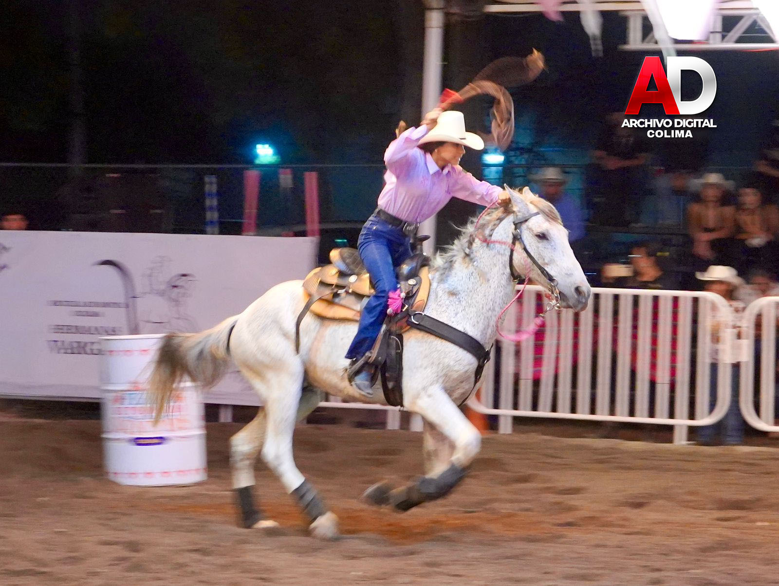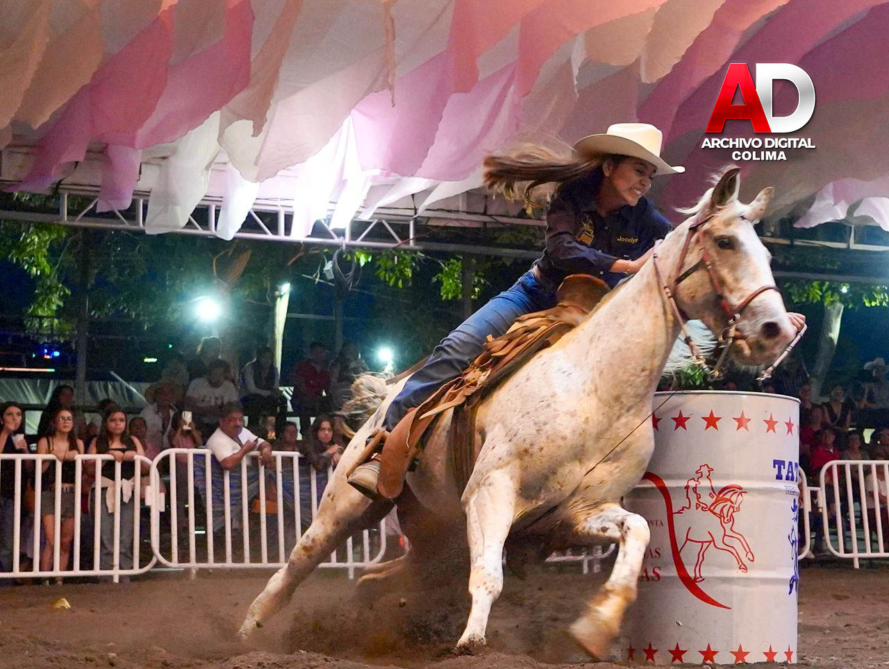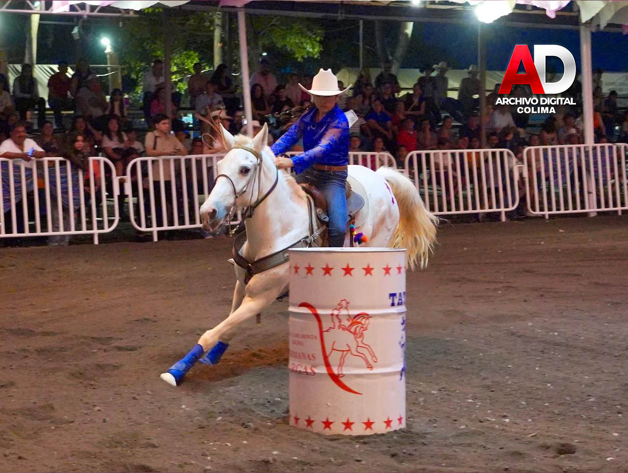 El Teatro del Caballo en la Feria de Todos los Santos 2025 estuvo con las emociones del público en su máximo nivel al ver la velocidad y la fuerza que 71 amazonas y dos varones –únicos competidores- imprimen a sus cabalgaduras y logran driblar obstáculos para realizar su recorrido en el menor tiempo posible, en la competencia de carrera de barriles, dentro del 4° Torneo de Rodeo Mixto de la #FDTLS que organiza el Gobierno del Estado de Colima, a través del Instituto de Fomento de Ferias y Exposiciones (Iffecol).