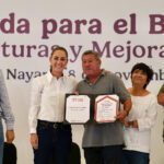 Tepic, Nayarit, a 8 de noviembre de 2025.- En Tepic, Nayarit, la Presidenta Claudia Sheinbaum Pardo realizó, como parte del programa Vivienda para el Bienestar, la entrega de 510 escrituras y constancias de reducción, como un acto de justicia ante los créditos impagables que en la época neoliberal se imponían para obtener una vivienda y lo cual cambió con la llegada de la Cuarta Transformación.