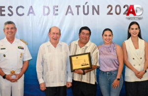 La presidenta municipal de Manzanillo, Rosa María Bayardo Cabrera, participó en el evento de fin de temporada de “Pesca de Atún 2025” de Grupomar, donde se entregaron reconocimientos a pescadores por su gran labor durante casi 10 meses.